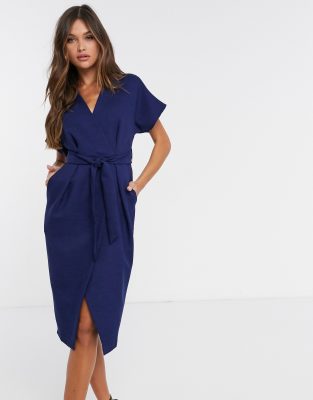 Closet London Bow Midi Wrap Dress In Navy Blue Closet Asos Nl Stylesearch